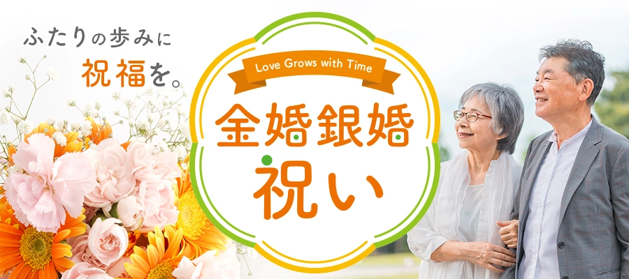 50年・25年という夫婦の節目を祝う金婚式・銀婚式には、名前や記念日を刻んだ名入れギフトを。思い出を共有できるペアグラスや時計、記念ボトルなどをご用意しています。長年の歩みに敬意を込めて贈る、世界に一つだけの特別なギフト。ご夫婦へのプレゼントはもちろん、ご両親へのお祝いにもおすすめです。