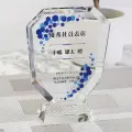 手作業でカット・研磨をおこなったクリスタル楯。シールド(盾)をイメージした八角形のクリスタル盾。側面から背面に加工された面取りがクリスタルのカットに反射します。各種記念品や表彰の記念としてオススメです。【名入れ料金込み】