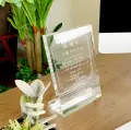 サイズ H180×W130×D57mm 商品に含まれるもの ◆クリスタル盾 1個 ◆メーカー専用箱入り ※高級布張り化粧箱はお選びいただけません。 ◆彫刻料・消費税 シンプルで飽きのこないシルエットがどんな用途にもお使いいただけます。