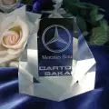 小さなオブジェのように立体的なタイプのペーパーウェイトは、高級感もあり、机上での存在感も抜群。企業の各種記念品(創業・新社屋完成・ISO取得など)の品やロゴマークを入れたノベルティーグッズなど、用途も人気も高い逸品です。 【名入れ料金込み】