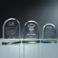 クリスタルトロフィー。底面のレインボー蒸着処理で、アーチカット部分が様々な色合いで光を美しく反射します。各種記念品や表彰の記念としてオススメです。【名入れ料金込み】
