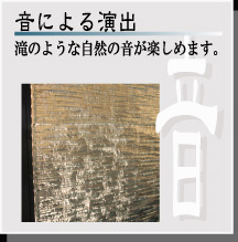 優しい光とガラスの輝き、自然の水の音により、憩いの癒し空間を創ります。